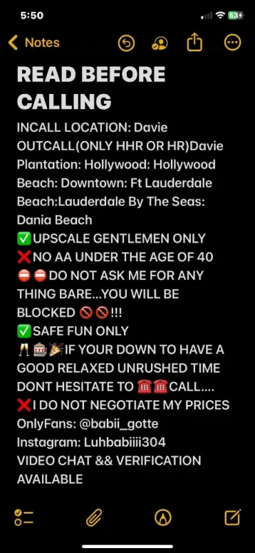 ❌ NO BLACK GUYS YOUNGER THAN 40❗❗❗ ✅...FIRST COME FIRST SERVE(ONLY DOING A FEW)✅ ‼PLEASE READ AD BEFORE BOOKING....IF NOT I WILL NOT RESPOND‼ ✅MY INCALL LOCATION IS IN DAVIE(CLOSE TO 441) ❌NO QV OUTCALL (UNLESS YOU ARE LESS THAN 10 MINUTES FROM ME) ❌NO BLACK GUYS YOUNGER THAN 40❗❗❗ ⚠..IF YOU CANT MAKE IT WITHIN 30 MINUTES OF BOOKING YOU WILL BE BLOCKED....NO SHOWS WILL BE BLOCKED❗❗❗❗❗ OnlyFans: @babii_gotte Instagram: Luhbabiiii304 ⅅℛℰᎯℳ Ꮆℐℛℒ 🎀🔥🙏 P⃣E⃣R⃣F⃣E⃣C⃣T⃣🔟🙈👙 🅻🅴🆃 🍒🅼🅴 🅱🅴 🆈🅾🆄🆁🆂💑 ıяяєṡıṡṭıɞʟє 👅💦 💎💕 ѕиєαк αωαу and ρℓαу😈🎠 I'm definitely🍭Sweet as heaven with an untamed bad girl side that's Naughty as hell😈 What I provide is an Experience! 💫 Catering to respectful and discreet gentlemen only💕 ✨ Silky smooth skin💋 ✨Sensual Personality🦋 🚫NO BARE NO BBJ NO KISSING ❌No DISAPPOINTMENTS ❌NO Drama ❌NO Hassle ⚠Allow me to ENTERTAIN your wildest FANTASIES ☑ I AM DISCREET ✅TRUCK DRIVERS WELCOME ❎ NO LAW ENFORCEMENT ❎ NO PIMPS ❎NO BARE/BBJ