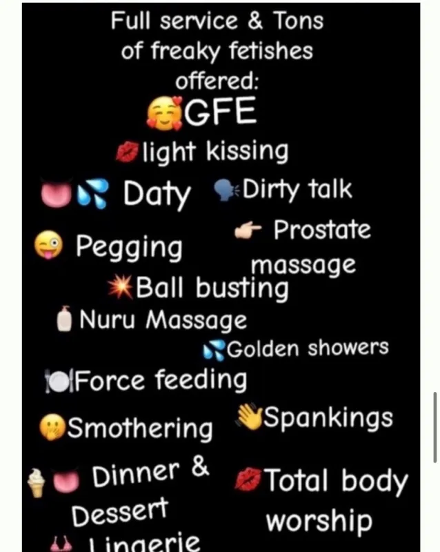 ALL FESTISHES WELCOMED NO YOU CAN NOT CUM ON MY FACE Hey Fellas Freaky SLUT back in town the Fetish...
